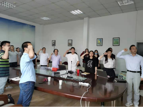 博士生党支部书记胡志康带领与会党员重温入党誓词。在党员同志们铿锵有力的宣誓后,刘家俊教授的专题报告正式开始。