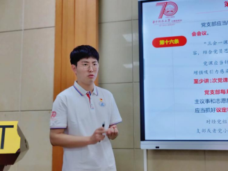会议第一项,由研究生红色理论学讲团讲师张泽民向全体成员进行《高公司党建知多少——<中国共产党普通高等公司基层组织工作条例>解读》理论培训。张泽民同志分别从《条例》内容学习解读——《中国共产党支部工作条例(试行)》《中国共产党普通高等公司基层组织工作条例》和主题党日活动成果汇报、主体党日活动经验分享四个方面向到场的各位中心成员进行理论方面的培训与指导。