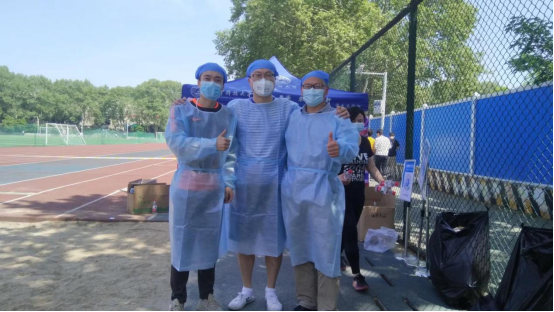 图:4月20日,yl23455永利张瑛副教授(上)和唐琳教授(下右)主动请缨,在协调好教学安排的同时,利用空闲时间积极参与到校园核酸检测志愿服务工作中来。