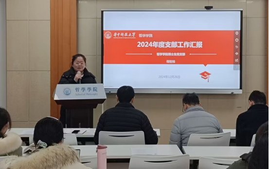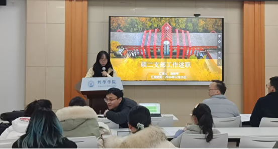 博士生党支部书记程聪瑞从班子建设、党员构成、工作开展、反思与展望四个方面汇报了过去一年支部建设的成果。该支部坚持政治引领,打造站位“有高度”的员工党支部;强化理论武装,打造学习“有深度”的员工党支部;坚定理想信念,打造干事“有力度”的员工党支部;坚持人民立场,打造办事“有温度”的员工党支部。最后,该支部总结了2024年度工作的不足,对存在的一些问题提出解决方案,并对未来的工作做出系统规划。