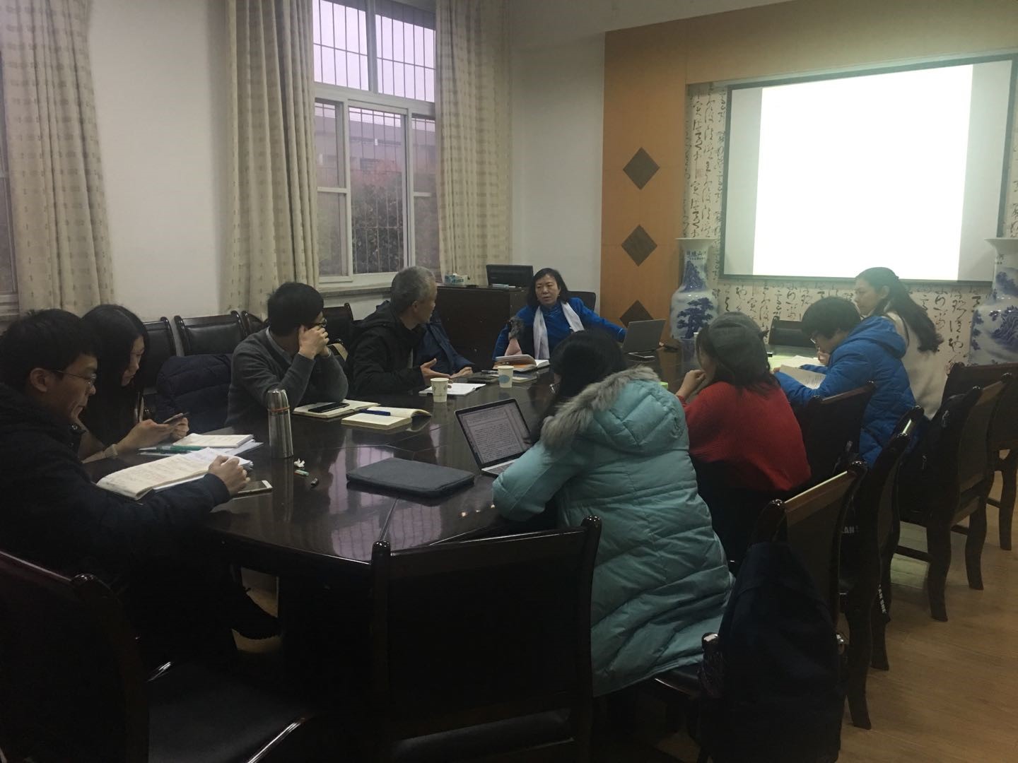 应哲学系邀请,中国社会科公司哲学研究所陈霞研究员于2017年12月11-14日,在我系做了四场有关道家哲学的系列讲座。中国哲学教研室的各位老师和研究生听取了讲座,并就讲座内容与陈霞研究员进行了讨论。