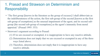 然而,普拉萨德认为斯特劳森的论证是无效的:普拉萨德拒绝接受命题(5),他认为决定论并不需要通过满足斯特劳森列出的两个条件才能使我们无法恰当地应用“反应性态度”;恰恰相反,决定论本身就足以使得“反应性态度”无效。为了说明这一点,普拉萨德做了一个形象的类比——如果一颗子弹可以直接了结目标,那么它就无需瞄准目标旁边的炸弹。如果普拉萨德的批判成立,那么斯特劳森就应该“选择直接的道路”:他需要直截了当地论证为什么决定论与人们彼此之间需要承担道