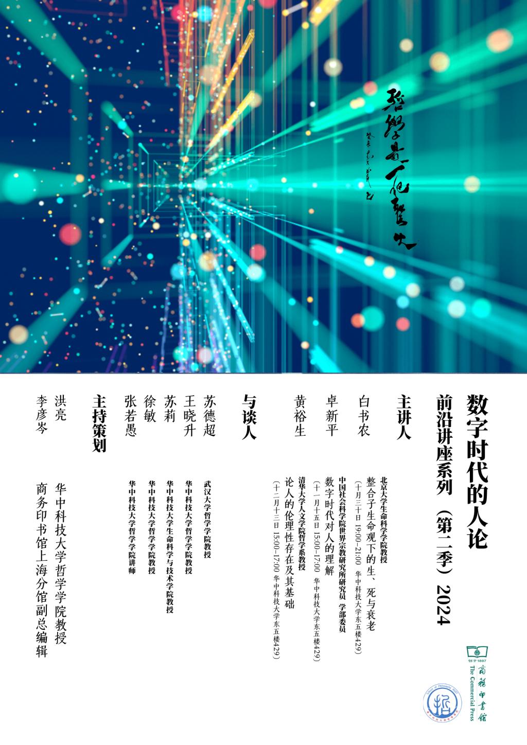 基于“数字时代的人论”商务立项文库,yl23455永利与商务印书馆上海分馆于2023年10月合作,成功举办了“数字时代的人论”前沿讲座系列第一季,该讲座系列由yl23455永利洪亮教授、商务印书馆上海分馆副总编辑李彦岑共同主持策划,第二季将于2024年10月至12月举行。