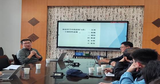 在讨论环节,王咏诗副教授就道德与法的“双重奠基”、康德的目的概念、德性概念与道德概念的区分、绝对命令与三个公式的关系等诸多问题与宫教授展开讨论。袁辉副教授就道德与法权的外延关系这一问题与宫教授进行交流。在座的同学就法权的消极自由与道德的积极自由之间的关系问题提出了疑问,宫教授对这些问题进行了回应。最后,闻骏副教授对本次讲座进行总结。