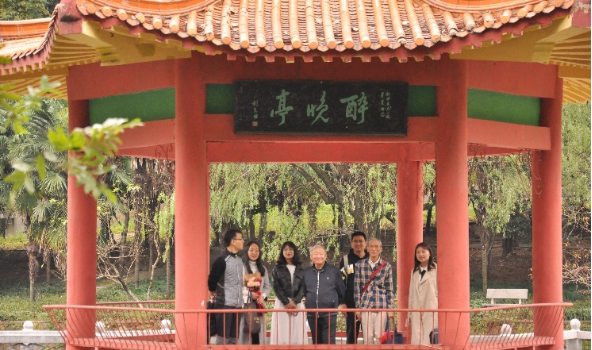 醉晚亭位于喻家山东南,毗邻世界名人文化园;此地茂树嘉卉,碧水蓝天,风景优美。斯亭远吞山光,平挹黉舍。半亩方塘,有亭翼然,林木环抱,远隔喧嚣,恂学者息游胜境。