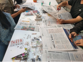 活动选用报纸素材为近期的《中国青年报》,同学们在制作拼贴诗的同时能对实事有所了解。在严肃的新闻中摘录词句,重新组成一首有趣的诗歌,同学们丰富的想象力让文字焕发出不一样的生命力。