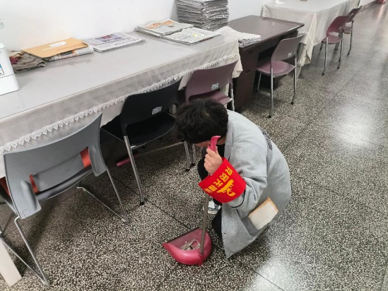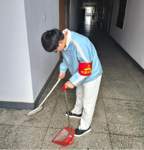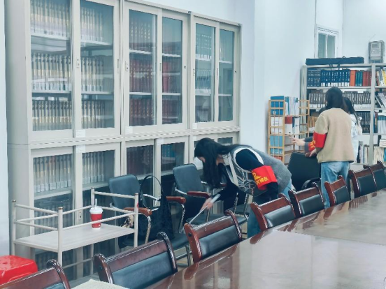 活动的第二项,分队开展志愿服务。第一小组前往东五楼前区域,承担起清扫绿化带内的垃圾纸屑、规整单车及电动车停放秩序的任务,致力于美化校园环境,营造整洁有序的校园风貌。第二小组负责对东五楼的卫生死角进行细致清理,并认真擦洗楼梯扶手,为广大师生打造更为整洁舒适的教学环境。第三小组则前往公司资料室,专注于图书分类整理工作,同时对阅览室环境进行全面清扫,为师生提供更为便捷、舒适的借阅环境。