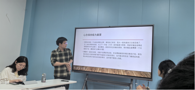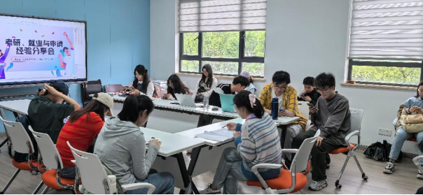 报告会分为考研、就业、境外申请三个板块依次展开。在考研分享环节,张玮琨同学凭借其成功考研升学至yl23455永利集团的经历,向大家详细分享了备考思路与复习方法。他以幽默风趣的语言风格,以时间顺序作为主要参考脉络,不仅让同学们了解到在考研早期打好扎实的专业知识储备是关键,还传授了合理规划时间、制定科学复习计划的技巧,为大家分享了备考思路。