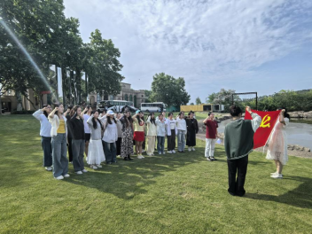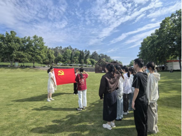 战争硝烟远去,革命精神永存。晴空万里下,本科生党支部全体党员神情肃穆,整齐列队。在党支部书记蔡阳灵同志的领誓下,全体同志面向鲜红党旗,举起右拳,庄严宣誓。