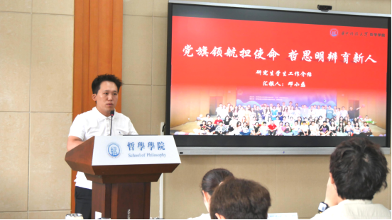会议第四项,研究生辅导员邓小磊介绍公司整体员工工作。他围绕员工发展与服务体系,重点从党建引领、学术培养、实践开展、权益关爱、奖助工作及就业指导等六个方面展开介绍,系统阐述了公司在员工支持与服务方面的各项举措,帮助新生全面了解研究生奖助学金体系,为新生顺利融入校园生活、有序开展科研学习、立志成为卓越华科大人奠定了基础。
