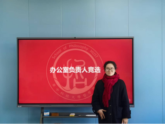 胡静同学进行办公室负责人竞选答辩。她从部门工作情况与未来规划方面展开答辩,她介绍了今后将做好中心内部的制度建设和体系建设,同时做好团队建设,协同合作,促进中心工作更加高效。