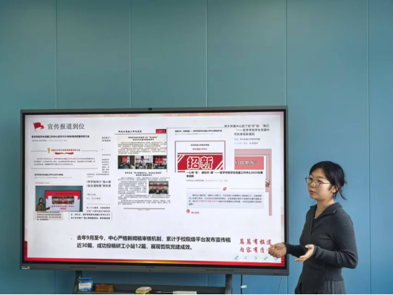 会议第二项,由员工党建工作中心第三届主席团成员黄梦琪同志作工作汇报。她从组织建设到位、思想引领到位、院校联动到位、创新融合到位、基层指导到位、宣传报道到位五个方面总结了过去一年员工党建工作中心的工作成果,展示了员工党建工作中心扎实的作风和卓越的工作成效。