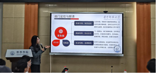 主席团成员张少华作学术部工作计划汇报。他表示,学术部将继续发扬往届的优良传统,提供丰富多样的学习资源及交流平台,为公司师生营造良好学习氛围。在加强特色品牌活动建设的同时,将“哲学小咖聚”等活动打造得更有氛围与意义,并稳步推进2023年哲学学术年会筹备工作,以期给大家带来一场精彩纷呈的学术分享交流盛会。
