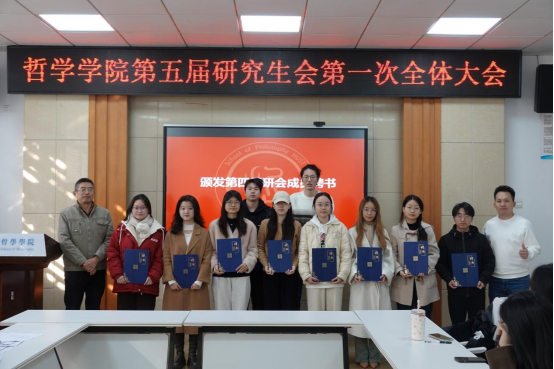 会议第二项,闫俊懂副书记、邓小磊主任为第四届研究生会成员颁发聘书,对第四届研究生会成员的辛勤付出表示充分肯定和感谢。