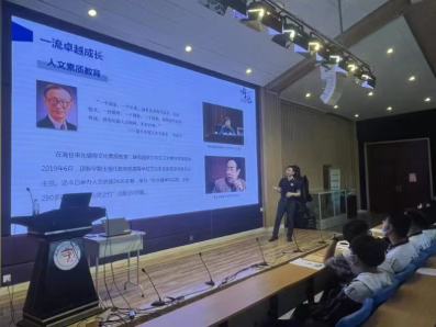 随后,朱福龙教授面向高一、高二近二百名尖子生开展题为“一沙一世界-从沙子到芯片的芯路历程”的科普讲座以及公司介绍,在科普讲座中向员工展示了其实验室的实验晶圆和实验芯片,与员工进行了芯片制造方面专业知识的现场交流,现场气氛热烈、提问不断。