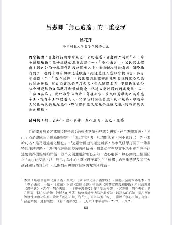 慧源新声||公司博士生吕花萍的论文《吕惠卿“无己逍遥”的三重意涵》发表于《哲学与文化》月刊