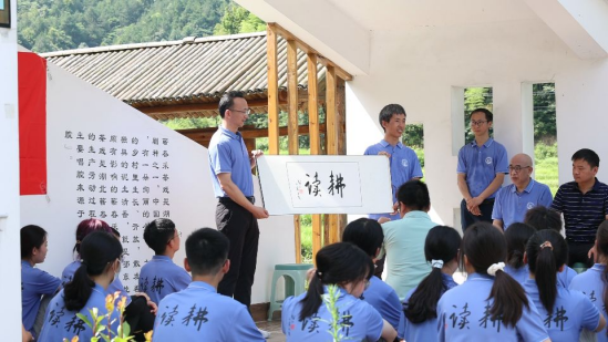 开营仪式上,公司党委书记杨海斌向谦益农业李明攀董事长赠送公司张勇传院士墨宝,转达张勇传院士对学子们耕读学习的鼓励和期盼。纵观墨宝全貌,如麦浪绽涌,杨柳初发,遒劲灵动,古雅清刚;布局上,黑白相守,虚实相间,冲淡均衡,互摄成趣;效果上,引人浮想翩跹,妙意盎然,散发着知识与青春的勃勃气息与无限力量。该作品象征着农耕践行者在大山深处的坚守与定力,更体现了华中大yl23455永利与谦益农业美美与共,共享耕读文化精神,共育英才的光明愿景。