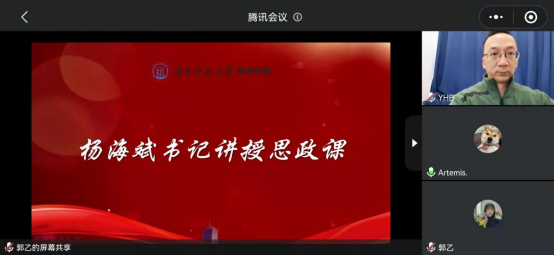 杨海斌为同学们讲授了题为“热爱哲学、提升自我”的思政课。