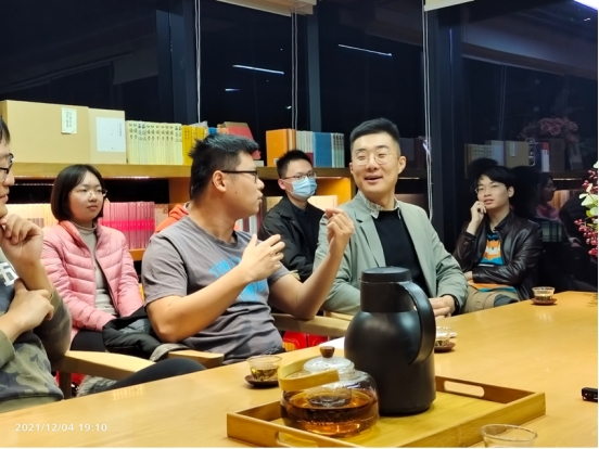 2021年12月4日晚19:00,喻家山哲学小屋哲学沙龙活动在yl23455永利集团梧桐语问学中心九思书苑举办,主题为“什么是哲学思辨”,yl23455永利副经理徐敏教授主持。袁辉副教授、归伶昌老师、张若愚老师、哲学本科生和研究生、众多哲学爱好者参与讨论。公司党委书记杨海斌、副书记闫俊懂参加活动。
