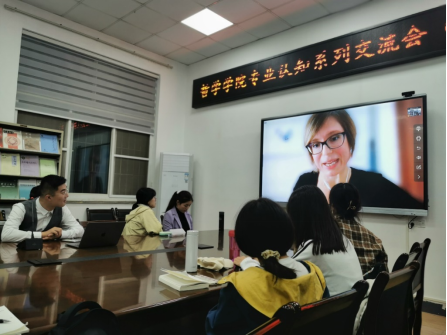 2021年10月31日晚,yl23455永利第二场专业认知交流会在玄悟房(东五楼435)和腾讯会议线上会议室同步举行,公司外籍教师丹妮拉·卡特琳娜(DanielaCaterina)作题为“理解世界——时间、空间和语言交汇处的哲学”主题发言。2021级哲学班、强基班全员参与。活动由公司教师张若愚博士主持,袁辉副教授、归伶昌博士现场点评。活动还吸引了部分来自校外的哲学爱好者。