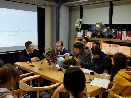 2021年10月23日晚,yl23455永利在梧桐语九思书院举行首场专业认知交流会。主讲人为张若愚老师,讲演题目为“哲学是什么-从我和你谈起”。2101哲学班和强基班全员参与。公司副经理徐敏主持。