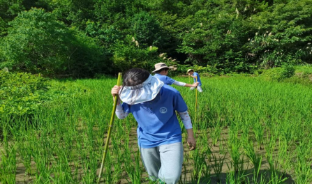 在社会实践的这一周里,我们有幸借助耕读教育的机会亲身体验了虚心谷的特色活动。我们上山砍柴,下山劈柴;在艾草地里挥舞着镰刀,在骄阳下翻动着艾叶;我们在水田里除草,在红薯地里施肥,在厨房烧柴做饭,在清晨洒扫庭院……