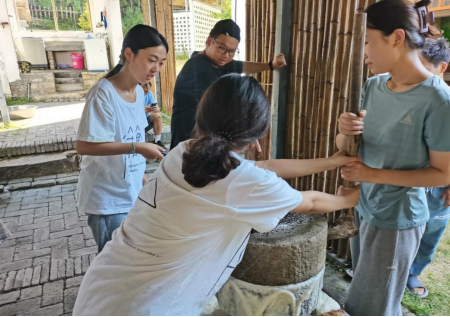 图为队员们体验虚心谷特色农耕活动