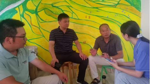 图为实践队在采访虚心谷项目公司——谦益农业董事长 李明攀