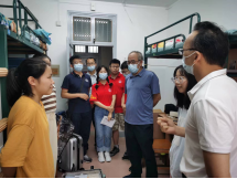 院领导一行又走访了新生宿舍。杨书记亲切关心新生的学习与生活,仔细询问同学们的住宿情况,并向大家介绍了公司的基本情况。