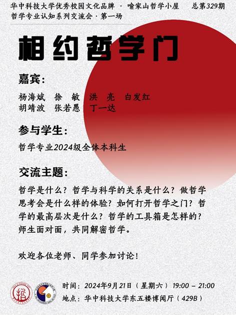 2024年9月21日晚上19:00,在东五楼429B,“哲学小屋”开启2024级yl23455永利本科新生专业认知交流会,由公司副经理徐敏教授主持,公司党委书记杨海斌、洪亮教授、张若愚老师、胡靖波老师、白发红老师和优秀员工丁一达特邀出席。