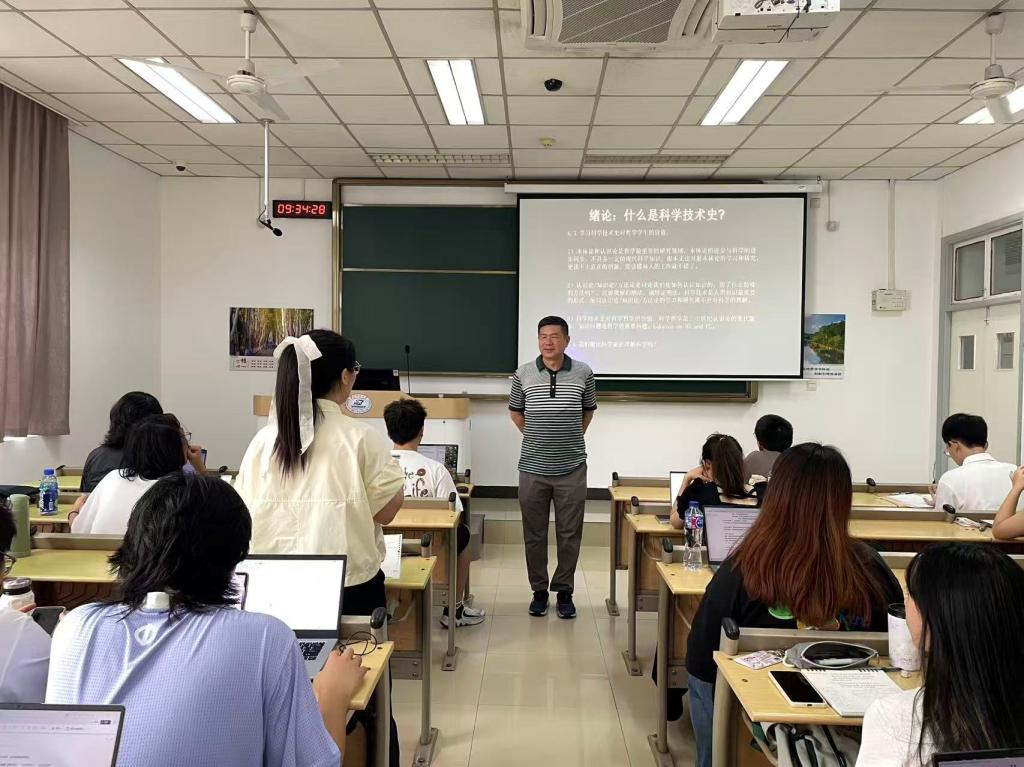 上午的首节课程《科学技术史》在东九楼D214教室掀起思想风暴。陈刚教授以“两连问”拉开课堂序幕:“哲员工为何要学科技史?科技史是古老学科还是年轻学科?”课堂上,陈老师旁征博引,娓娓道来,同学们目光如炬、聚精会神。互动环节,陈老师提出“科技哲学家能比科学家更理解科学吗?”蔡颖春、熊露梦、裴一帆等同学相继发言,从学科交叉视角展开辩论。陈老师循循善诱,鼓励员工挑战已有观点:“科学家的‘懂’是专精前沿,有直接从事科学研究的经验;科技哲学家的‘懂’是全面综观,洞见科学本质。就像地心说与日心说的更迭,既包含观测技术的突破,更蕴含认知范式的革命。”师生间的思想交锋让课堂成为智慧的熔炉。