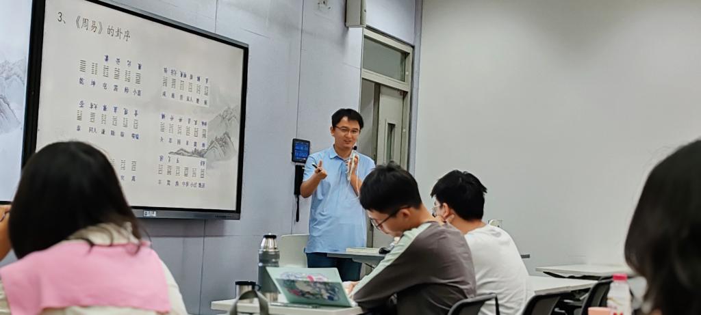 与《西方哲学史(二)》同时开课的还有东九楼A403教室的《中国哲学专题研究》。白发红老师以《周易》六十四卦卦序为切入点,用“太极生两仪,两仪生四象”的辩证思维,将六十四卦的哲学内涵娓娓道来。“阴阳之道不仅是古代的占筮之术,更是中国人认识世界的独特方法论”,他结合卦爻辞与现代生活实例,将深邃的哲学概念转化为通俗易懂的日常语言。员工们时而凝神沉思,时而奋笔疾书,课堂始终洋溢着求知的热忱。