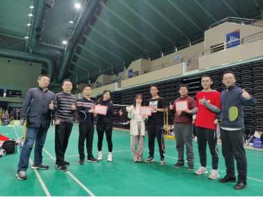 赛场上,每位参赛者都与对手斗智斗勇、敢打敢拼、每球必争。经过几个小时的初赛、决赛等的比拼,最终产生了本次羽毛球赛的冠亚季军。