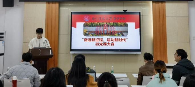 比赛结束后,杨书记进行总结发言。对同学们认真准备态度和精彩表现给予了充分的肯定。随后讲解了什么是微党课,重点讲授了微党课的特征:短平快,主题要聚而精,切入主题要小而巧,框架要简而清,从小入手讲出大道理,同时,微党课的形式也是多样的,除了传统的常规微党课,还可以有美术类、音乐类、电影类的微党课,利用经典赏析,传颂历史成就、光辉岁月、百年华彩,关键在于能让听众产生共鸣,引人入胜。