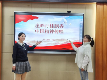 第四组我竟无言以队带来的微党课主题是《崖畔丹桂馨香中国精神传唱》。小组代表黄梦琪、李彦乐从崖畔丹桂秀馨香、高举党旗育人才以及中国精神薪火传三个方面,讲述了“燃灯董事长”张桂梅奉献青春为党育人为国育才的感人事迹。在张桂梅身上,我们可以看到伟大建党精神、雷锋精神、劳模精神。