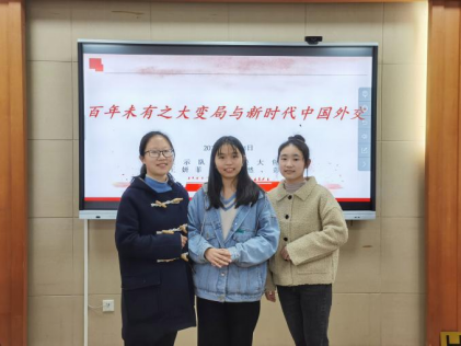 第六组摸大鱼队带来的微党课主题是《百年未有之大变局与新时代中国外交》。她们为我们讲述了巴黎和会上顾维钧的外交故事、周总理的外交智慧以及新时代中国外交天团的故事。