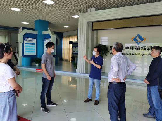 图:程远主任(左三)介绍国家脉冲强磁场科学中心